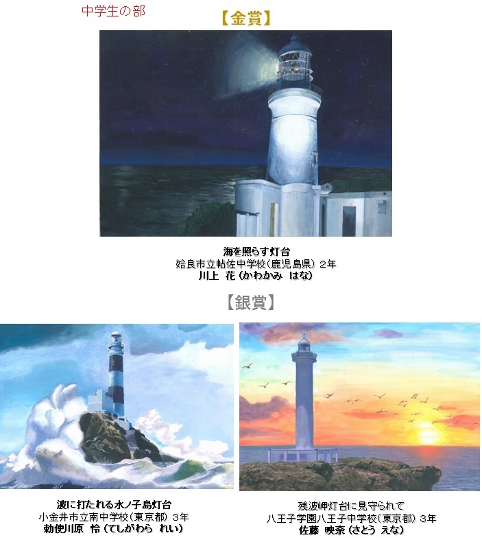 中学生の部、観音埼灯台特別賞、野島埼灯台特別賞の受賞作品をご紹介します。