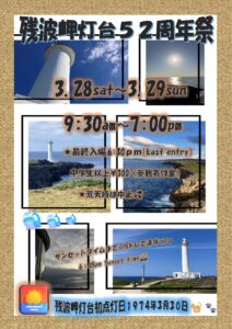 来る3月28日(土)~29日(日)、点灯開始から52周年を迎える残波岬灯台において参観時間を延長して『夕暮れ参観』を実施します。