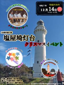 塩屋埼灯台では、来る12月14日(日)に点灯126周年前日祭として「塩屋埼灯台クリスマスイベント」を実施します。
